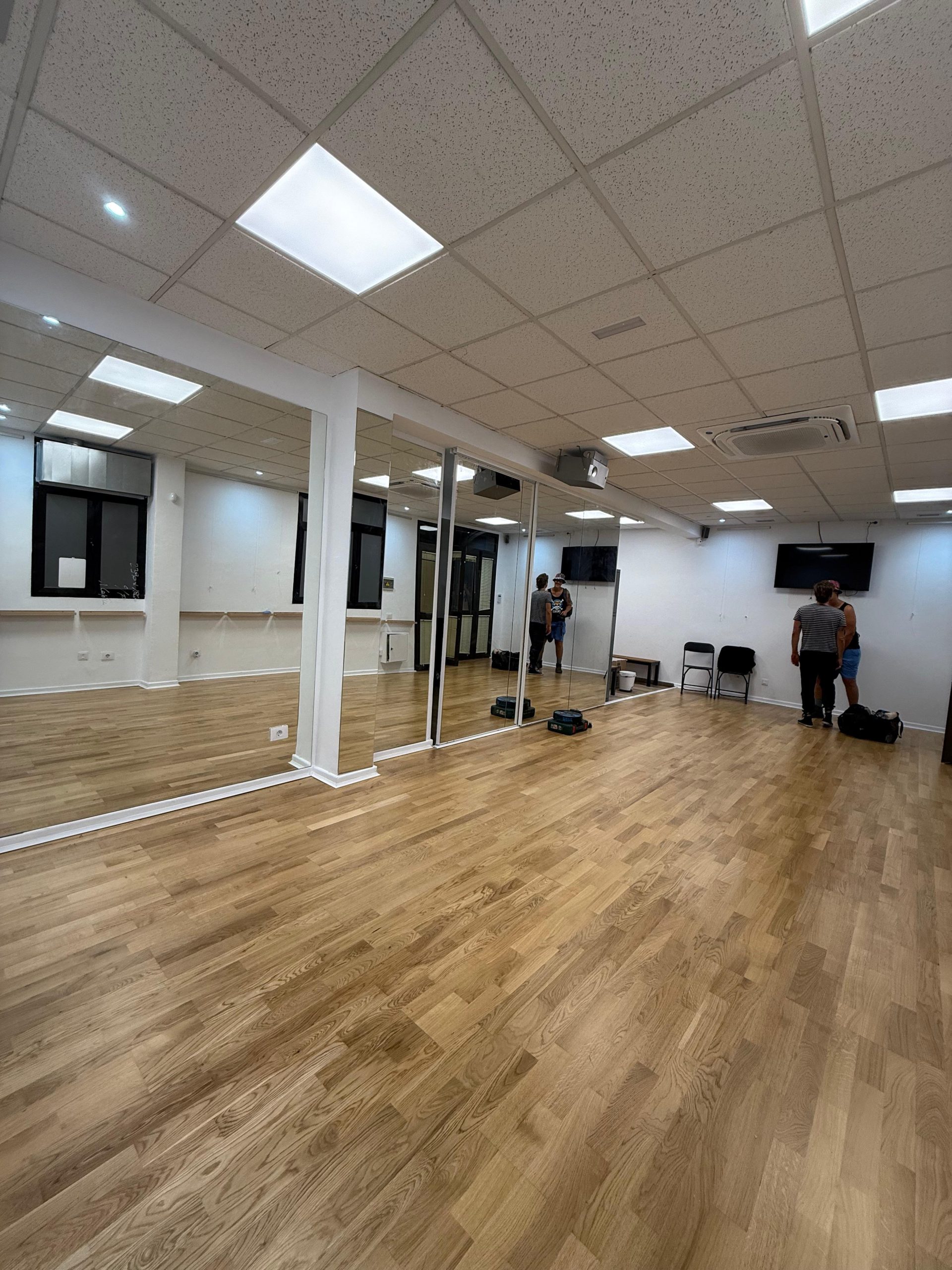 Contarás con un buen equipo de sonido, una acústica muy valorada y un suelo adecuado para el movimiento. La iluminación también puede adaptarse al tipo de actividad, desde clases técnicas hasta propuestas más escénicas.